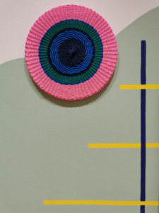 Indem Sandra Schollmeyer einen dynamischen und sich verändernden Raum schafft, lädt sie die BetrachterInnen dazu ein, ihre textile Welt zu entdecken, in sie ein zu tauchen, sich in Farben und Texturen zu verlieren und Freude und Inspiration zu finden. Sandra möchte gerne ihre Vision teilen und einen Einblick geben wie Oberflächenstruktur haptische Sinnlichkeit vermittelt und wie das Textile Räume verändert, indem es sie mit dauerhafter Lebendigkeit füllt.